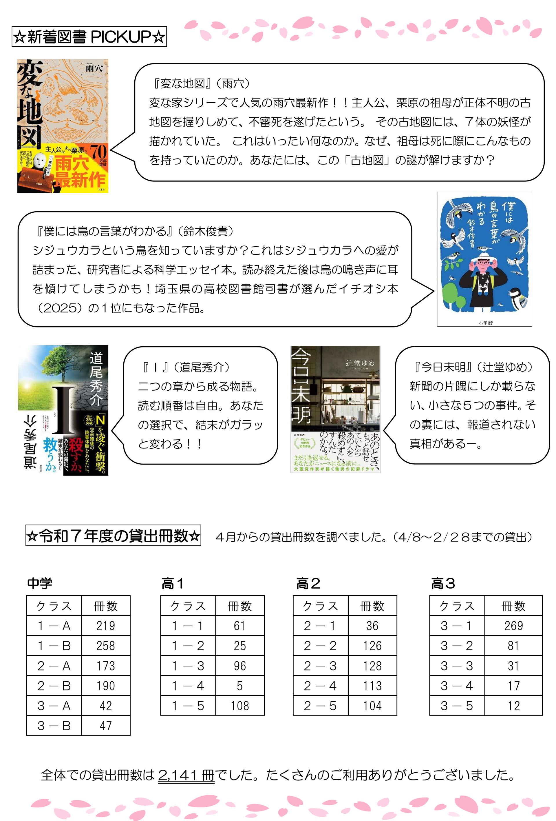 ※図書館便りの内容は外部公開用です。在校生向けの内容とは異なる場合がございます。